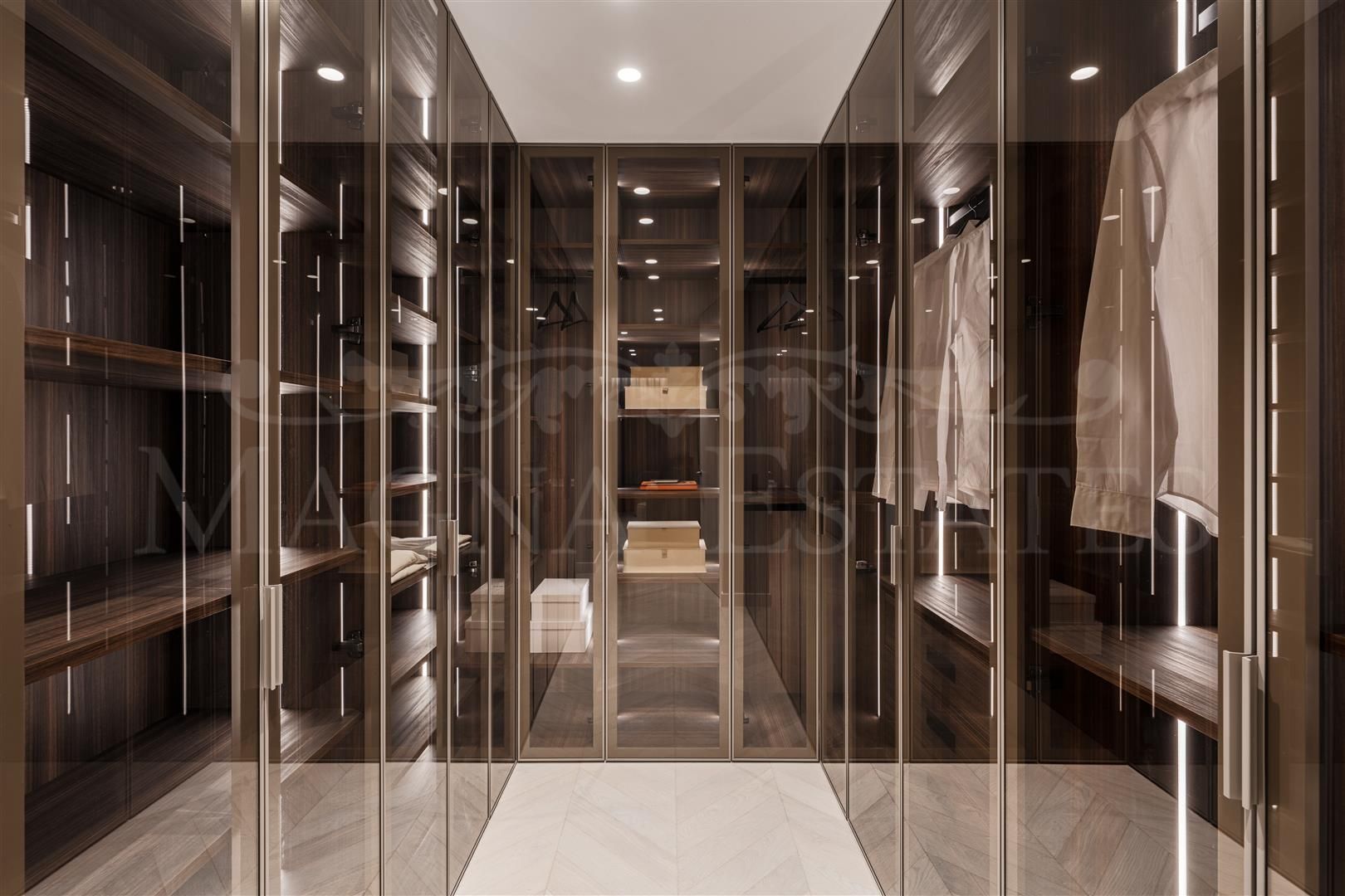 El apartamento dispone de cuatro dormitorios, todos ellos con baño en suite, y un baño adicional, lo que garantiza comodidad y privacidad para toda la familia o invitados. La cocina está completamente equipada y cuenta con una zona de lavandería y cuarto de servicio. Entre las características interiores destacan la climatización, suelos de madera, armarios empotrados, sistema de hogar inteligente, doble acristalamiento y acceso por vídeo portero. El estado de la vivienda es excelente, ya que ha sido recientemente renovada.
